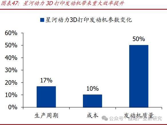 智神星二号CQ-90策动机上,90%以上分量采用3D打印手艺制制。3D打印工艺策动机出产周期缩短至1个月内,为保守模式的1/6,制形成本降至本来的10%,同时策动机分量减轻50%,显著提拔了运载效率和经济性。一台2500N火箭策动机焦点零件的制形成本,从保守工艺的50万元降至3D打印手艺的不到5万元。星河动力正在其50吨级液氧火油策动机中,涡轮泵3D打印件分量占比约65%,发生器3D打印件分量占比约75%,从管90%为3D打印件,推力室3D打印部门占比约30%,阀门壳体类零件约90%为3D打印制制。铂力特2024年贸易航天范畴订单中,星河动力占比超30%。2019年,飞而康科技取星河动力合做,操纵华曙高科金属3D打印处理方案,正在4个月内完成30多件火箭策动机零件的交付。