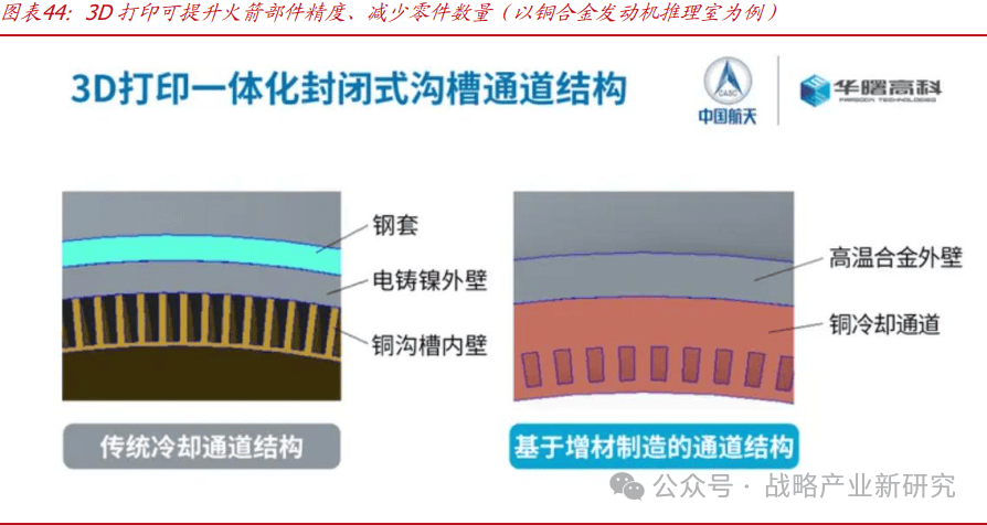 猎鹰 9 号运载火箭【Falcon 9】:2014 年 1 月 SpaceX 成功发射了猎鹰 9 号运载火箭,此中 9 个 Merlin 1D 策动机中的一个利用了 3D 打印的 Main Oxidizer Valve(MOV,从氧化剂阀门)从体,这是 SpaceX 第一次发射利用 3D 打印零件的火箭。取保守锻制件比拟,3D 打印阀体具有优异的强度、延展性和抗断裂性,而且取典型铸件周期以月来计较比拟,3D 打印阀体可正在 2 天内完成。 正在工业范畴,3D 打印最早使用正在一些比力复杂的难制制的范畴,好比飞机中空的叶片、叶轮以及中空的流道。这些范畴对于保守工艺而言制制难度极大,但却能够通过 3D 打印手艺轻松实现。早正在 2012 年,美国正在《先辈制制国度计谋打算》及《国度制制业立异收集打算》等计谋规划中,就已将 3D 打印列为将来最环节的制制手艺之一。我国正在 2015 年 5 月 8 日发布的《中国制制 2025》规划中,也明白将 3D 打印列为沉点成长范畴。 朱雀三号便是我国对标 SpaceX 猎鹰成本的代表(液氧甲烷+不锈钢箭体+3D 打印+箭体收受接管),整个降本路子我们归纳可分为材料、制制、收受接管三个方面。此中材料侧采用液氧甲烷燃料,代替保守火油降低 70%成本,同时选用不锈钢箭体,依托可复用性持久成本降低 59%;可收受接管火箭手艺来看,蓝箭航天创始人、CEO 张昌武预测:(“将来 3 年内,中国贸易航天将送来高光时辰。可收受接管火箭手艺成熟,运输成本降至每公斤 3 万元以下”。 蓝箭航天采用金属3D打印手艺,此中天鹊系列策动机的燃气发生器取燃烧室部件均采用了铂力特的激光金属3D打印设备。天鹊12B策动机3D打印的零件占比已达到70%以上,打消的零件数量达到了30%。 航空航天是工业级 3D 打印机最焦点下逛,占国内头部厂商营收超 50%。工业级 3D 打印机分歧于消费级产物,具有更大的体积、更高的精度、更贵的价钱,用于高精度的工业零部件出产。 空客 A350 XWB 客机采用 3D 打印的碳纤维座椅支架,单架减沉超 200 公斤,每年可节流近百万欧元的燃油成本。 其“快速阐发取制制推进手艺”(RAMPT)项目专注于开辟新型合金及大型部件的增材制制手艺,项目起头四年过程中,NASA已利用新开辟的极端合金、大型增材制制工艺和先辈的复合材料手艺,对3D打印的喷射器、合计跨越16000秒。该项目还已起头为从力RS-25策动机开辟全尺寸版本,这能够将其成本降低高达70%,并将制制时间缩短一半。