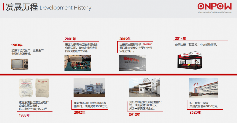 手艺立异是持续领跑行业的焦点暗码。自成立以来,ONPOW欧宝龙品牌一直将研发投入置于计谋高度,年均研发投入占发卖额的 4%-6%,组建专业研发团队,成立数控加工核心、塑料模具研发出产核心及质量检测试验室,实现从配件出产到拆卸环节的全链条自从掌控。凭仗持续立异, 红波按钮制制无限公司累计授权专利已有百项,每年不变推出 1-2个系列新产物,构成涵盖按钮开关、压电开关、触摸开关、信号警示灯等近40个系列的丰硕产物线mm全尺寸范畴,满脚分歧业业的多样化需求。其金属按钮开关更是达到IK10抗品级和IP67防水品级,能承受20焦耳冲击能量,可正在恶劣中不变工做,成为新能源、医疗设备、轨道交通等环节范畴的相信之选。 回溯红波按钮制制无限公司的成长轨迹,是一部中国制制业从做坊式出产全球化专业制制的缩影。1983年,以做坊形式起步,聚焦电视机电源开关出产,正在的海潮中埋下创业的种子。1988年,乐清县红波无线万元资金规模化运营,成为集体性质的专业制制企业。1992年,受西安机床厂委托开辟按钮开关,这一环节转机让红波正式深耕按钮开关细分范畴,凭仗质量为本的运营正在市场中坐稳脚跟,完成原始本钱取手艺堆集。