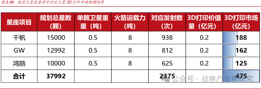 华曙高科是我国工业级3D打印机前锋,努力于为全球客户供给金属(SLM)增材制制设备和高(SLS)增材制制设备,并供给3D打印材料、工艺及办事。华曙高科具有产物和办事所对应的完整学问产权系统,自从开辟了增材制制设备数据处置系统和节制系统的全套软件源代码。公司是国内唯逐个家加载全数自从开辟增材制制工业软件、节制系统,并实现SLM设备和SLS设备财产化量产发卖的企业。 航天 3D 打印市场规模测算,3 大星座项目对应 2000 余次发射,带来 475 亿元 3D 打印累积市场规模。我们对 3D 航天打印市场规模进行测算:目前我国有 3 个大型星座项目,别离为千帆、GW、鸿鹄,规划卫星数量别离为 1。5、1。3、1 万颗,假设单颗卫星分量 0。5 吨,单枚火箭运载能力 8 吨,则需要 2375 次发射才能满脚 3 大星座项目对应的总卫星并轨需求。假设单枚火箭策动机 3D 打印价值量为 2000 万元,正在不考虑策动机反复利用的环境下,则我国航天 3D 打印市场规模无望累积达 475 亿元。 C919 采用 CFM LEAP-1C 策动机,LEAP 是由 GE 取法国赛峰(Safran)集团各出资 50%组建的合伙企业 CFM 研制的新一代航空策动机,具有更好的燃油经济性和更低的二氧化碳排放量,空客 A320、以及我国的C919 等单通道客机。正在 2014 年,LEAP 策动机改用了 3D 打印燃油喷嘴,其机能获得了进一步提拔,能更高效地夹杂取注入燃料。