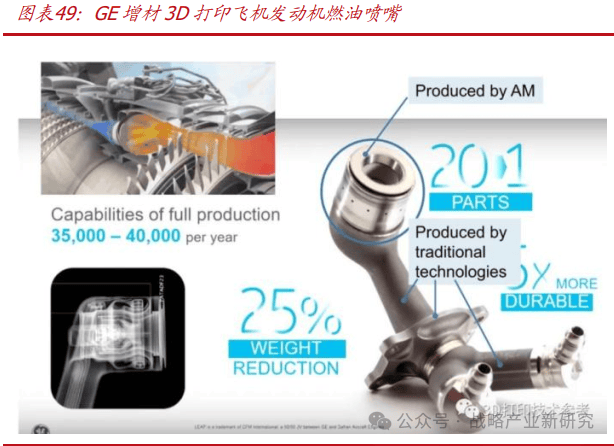 龙飞船【Dragon】:2020 年 5 月 SpaceX 成功发射全球初次贸易载人龙飞船。二代龙飞船拆有 8 台 SuperDraco 策动机,这也是全球首款投入利用的 3D 打印飞船引擎。此中,SuperDraco 策动机的多处环节零部件((火箭策动机室、从氧化剂阀阀体、冷却通道、喷油头和节省系统等)是利用 EOS 的间接金属激光烧结手艺(DMLS)制制,利用 Inconel 系列镍基高温合金打印完成,具有高强度和高强韧性。 截至 2021 年, 美国GE增材曾经打印了跨越 10 万个航空策动机燃油喷嘴,并现实使用于其最先辈的“LEAP 策动机”中,空客 A320 NEO、波音 737 MAX和中国国产 C919 大型客机都采用了 Leap 引擎。保守的燃油喷嘴由 20 个零丁的部件焊接而成,采用 SLM 3D 打印手艺,整套喷嘴能够一次成形,无需后续焊接,零件数量降为 3 个。改良后的燃油喷嘴具有质量轻、强度大和耐侵蚀的特征,可正在高达近千摄氏度的下一般工做,分量削减 25%,利用寿命提拔至 5 倍,燃油效率也获得极大的提拔!