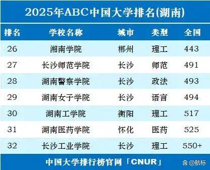 当 2025 年 ABC 中国大学排名的榜单落正在湖南高教邦畿上时,岳麓山的梧桐取湘潭的湘江岸线之间,“惟楚有材” 的底色又添了新注脚。从长沙的顶尖学府到益阳、郴州的处所院校,既藏着老牌名校的底蕴沉淀,也裹着处所院校的突围节拍 —— 中南大学稳坐全省头把交椅、锁定全国 25 位,就连益阳的湖南城市学院,也悄然跑赢了湘潭的湖南工程学院,一幅分层成长又相互联动的高教图景正清晰起来。